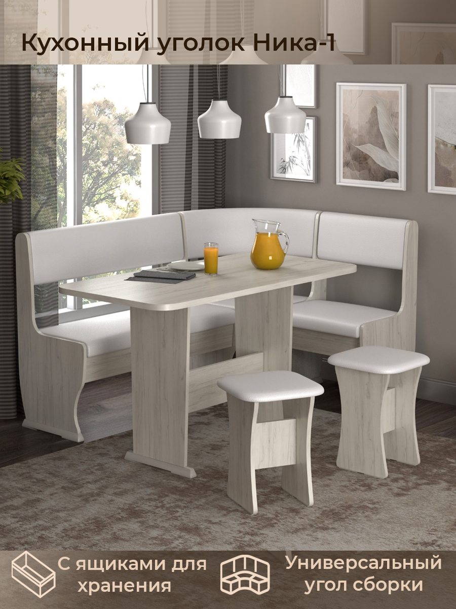 - Корпус: Дуб крафт белый. Винилискожа: Белый