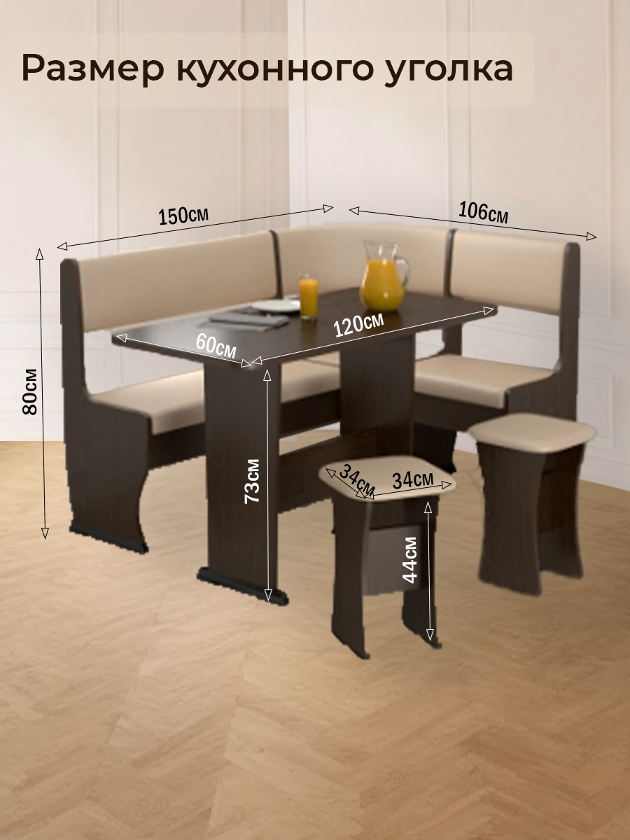 - Скамья угловая: 1500*1060*800 мм
