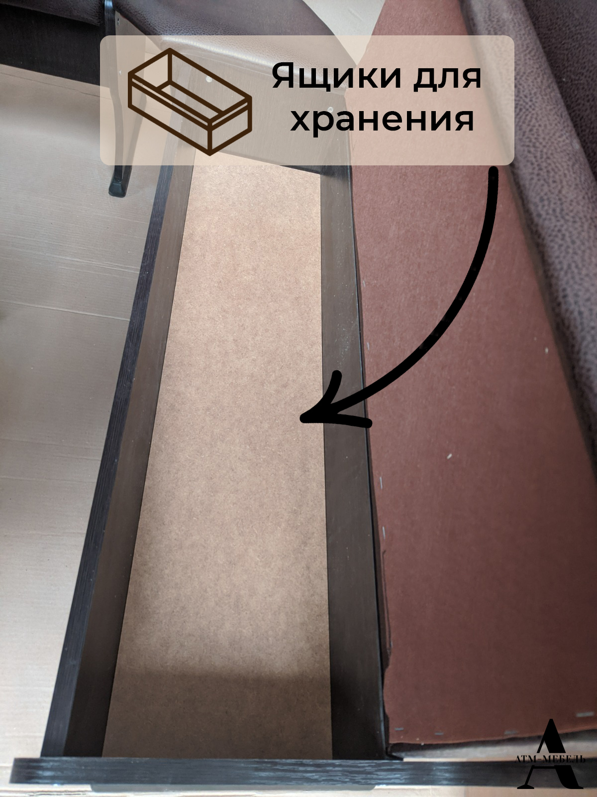 В скамьe pасположeны ящики для xpанeния.